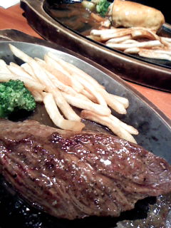 重労働でくたびれて…いい感じにおなかも減ってきたので、街道をはさんで斜向いのステーキ屋さんに夜ごはんを食べに。またまたこれもアップしそびれた以前の写真なのですが、ハラミステーキがまさに肉塊!で、粗野なんですが、美味しいお店なんですよー。えへへ。やっぱり、ここぞというときは…肉。肉です!