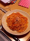 (市販の瓶詰トマトソースにツナ缶と牛乳を。ハーブ入り岩塩で味を整えるだけ♪牛乳より生クリームのが当然美味しい…)