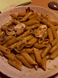 (ペンネが茹であがる直前に薄切りマッシュルームも一緒に茹でて、市販の瓶詰バジルペーストを絡めて塩コショウで味を整えるだけ♪瓶詰バジル結構美味しい…生のバジルには到底敵わないけど!)